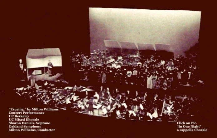 Milton Williams conducted The Solisti Singers, The Solisti Theater Orchestra, six of the University of California Student Division of Vocal Music’s eight vocal ensembles, the Banff Festival of the Arts Chorale and Professional Orchestra, the Notre Dame de Namur University Vocal Ensembles and Orchestra, and The Peninsula Youth Orchestra of Burlingame California.